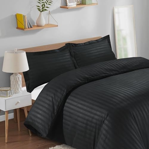 Casabella Satin Stripe Duvet Cover Sets -Luxurious King Black Bedding with Satin Stripes, King size Duvet Cover Sets, Hotel Quality King Size Duvet & Pillowcases, Black Satin Stripe Duvet King Size