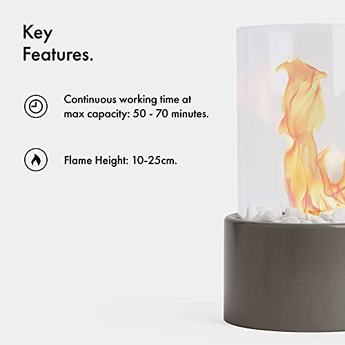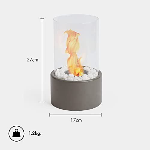 VonHaus Tabletop Fireplace – Bioethanol Fireplace – Bio Ethanol Table Top Fire, Table Top Heater for Outdoor & Indoor – Portable, 70 Min Burn Time, Windproof Glass, Round Shape – Hammer Stone Grey