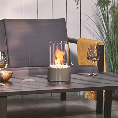 70-MINUTE BURN TIME: Enjoy summer evenings in the elegant warmth of the table top heater. For a shorter burn, simply use the included flame extinguisher. Measures H27 x D16.5cm.