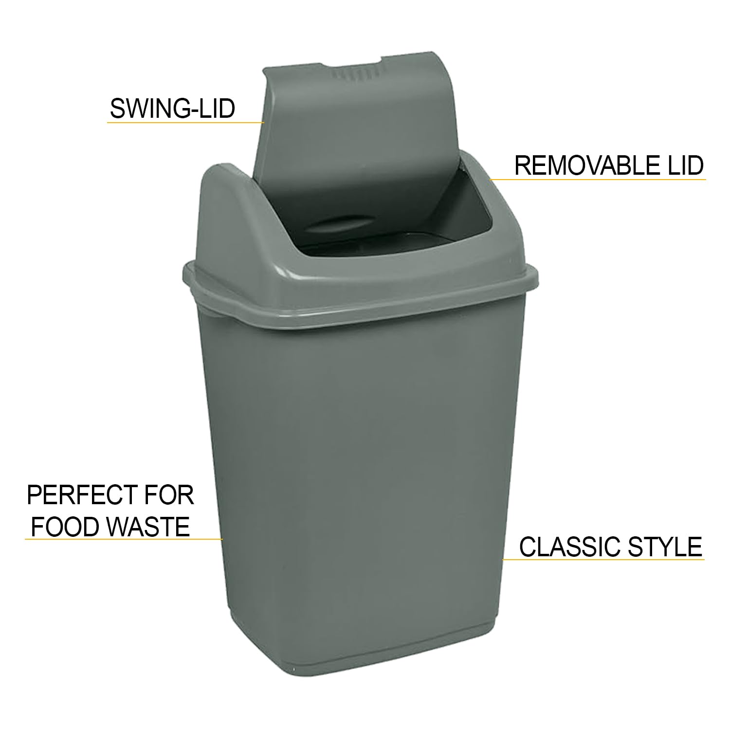 - SWING TOP LID: The swing top lid provides convenience and hygiene, allowing for quick disposal of rubbish, while also keeping your waste concealed and odors at bay.