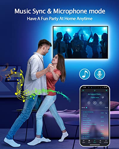 🌈【Music Sync TV LED Lights】LED lights for TV has a high sensitivity microphone built in, you just need to turn on the microphone mode through our app, the color of the TV LED backlight will change automatically with the beat of the music or your voice. Whether you want to start a wild party, immerse yourself in exciting and intense computer games, or create romance, this LED light for TV will give you a vivid and realistic immersive experience.