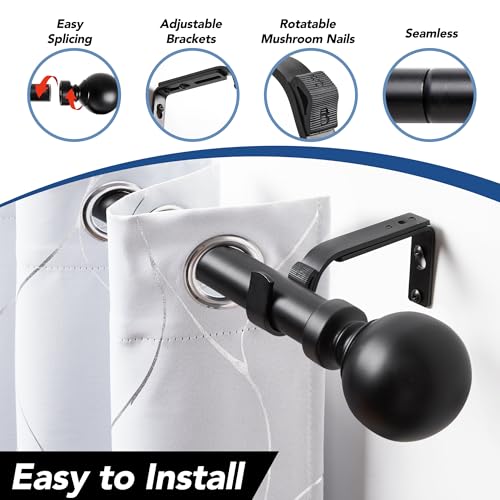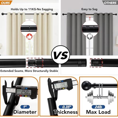 Deconovo Adjustable Black Curtain Poles 168-305 cm, 25 mm Sturdy Curtain Rods with Brackets and Round Finals, Splicing Extra Long Curtain Poles for Eyelet Curtains