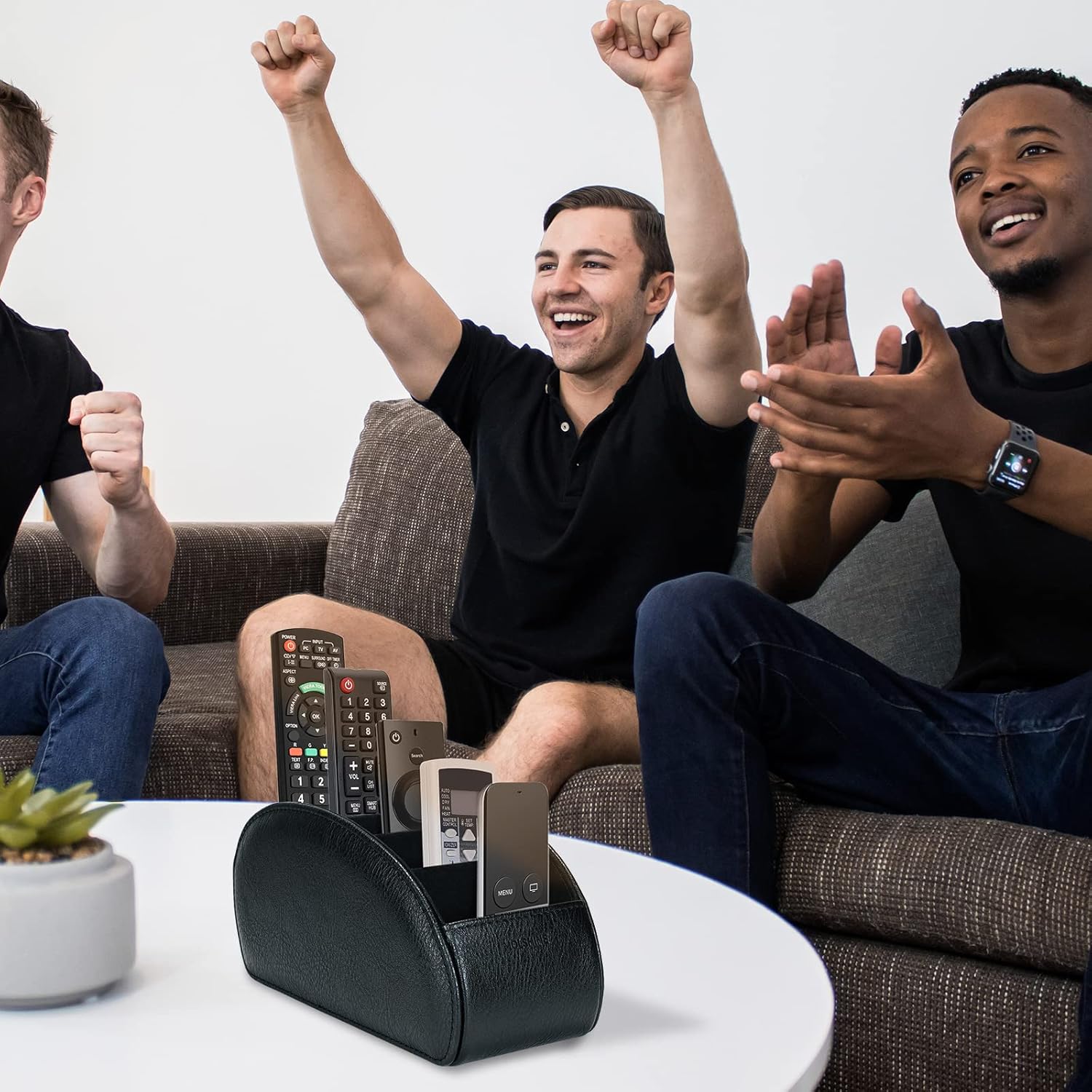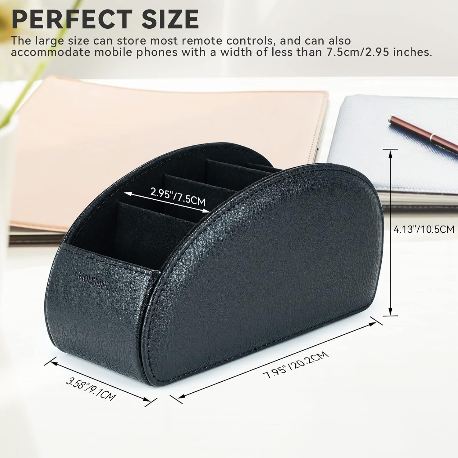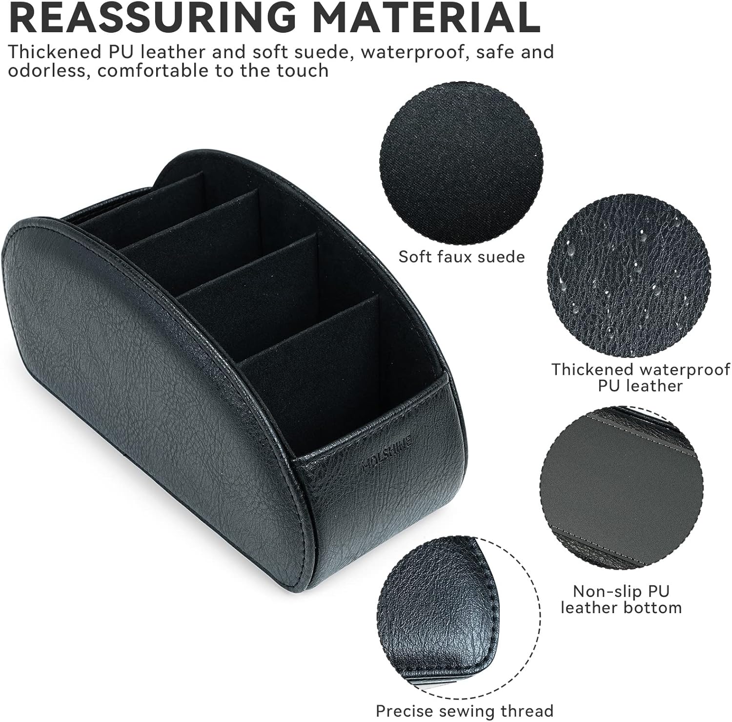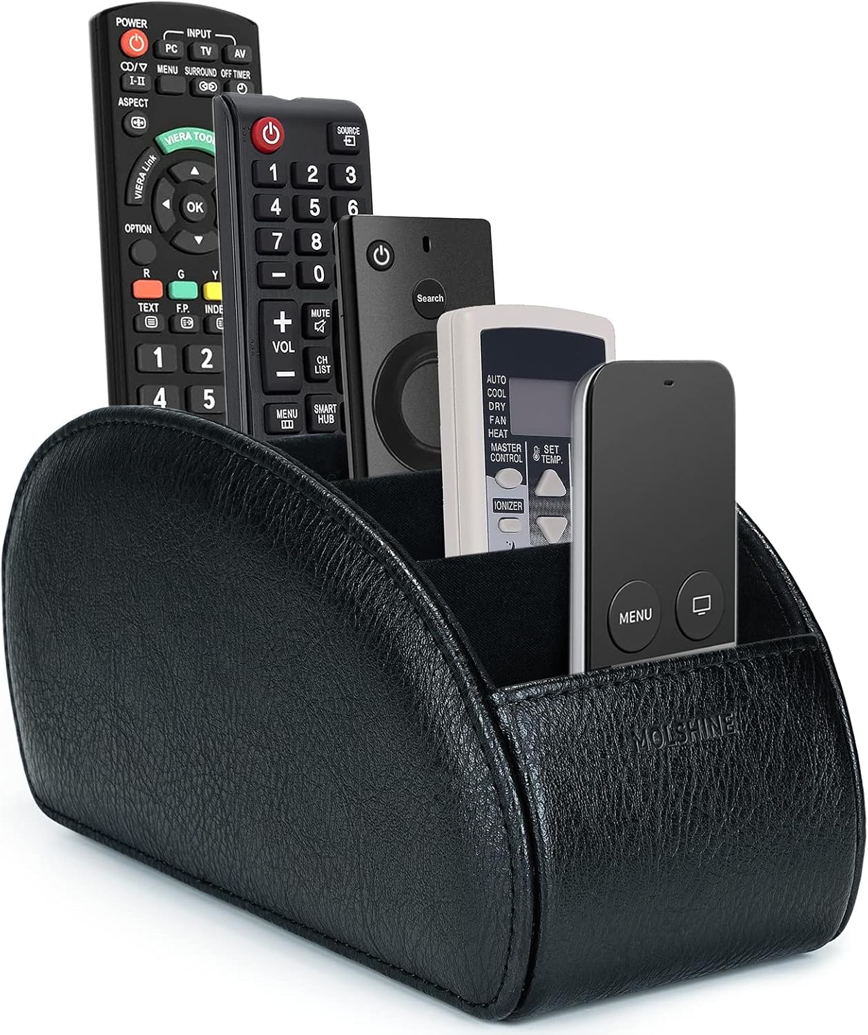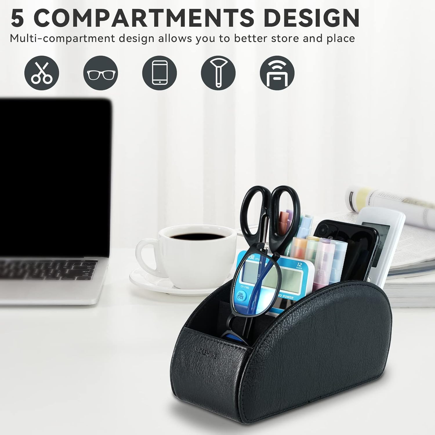 Molshine Remote Control Holder with 5 Compartments,Pu Leather Office Organization Storage Caddy Box for Tv Remote,Heater Controllers,Media Player,Office Supplies,Makeup Brush (Black)